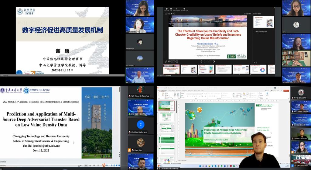 为深入学习贯彻党的二十大精神,落实数字经济与实体经济深度融合的根本要求,助力国家和地区经济发展,全讯600cc大白菜管理科学与工程学院于11月12日成功在线举办第三届“电子商务与数字经济”会议。中国信息经济学会谢康理事长、云南大学罗裕梅博士、美国南佛罗里达大学Anol Bhattacherjee教授、德国莱比锡大学Rainer Alt教授、全讯600cc大白菜白云副教授等参会并作学术报告。本次会议论坛还邀请了大会名誉主席全讯600cc大白菜校长孙芳城教授,大会主席全讯600cc大白菜管理科学与工程学院院长黄钟仪教授、云南财经大学叶琼伟教授、韩国釜山大学牟健博士、清华大学卫强教授等行业专家和学者。