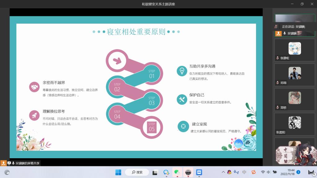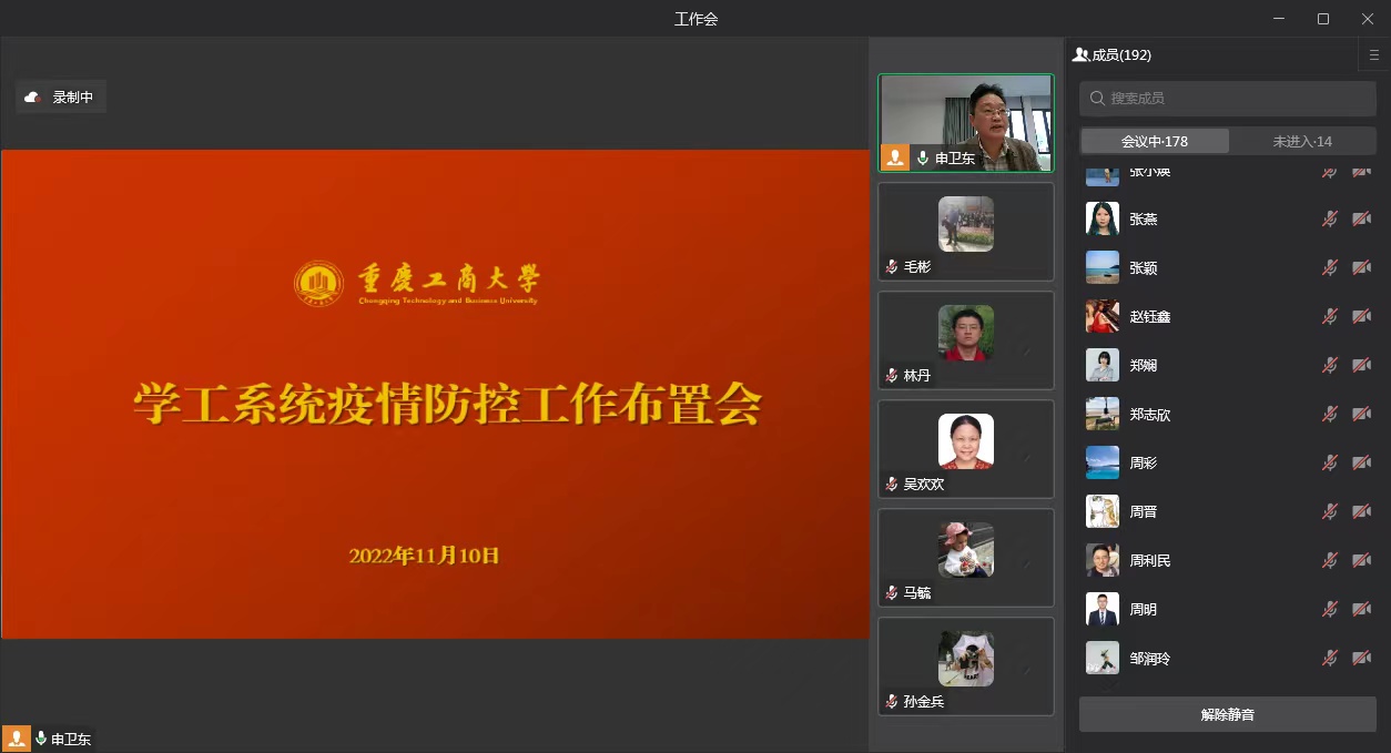 党委学工部(学生处)第一时间召开学工系统疫情防控工作布置会,要求通过各种渠道、各种形式将目前全市、全区以及校园周边疫情形势和学校防控安排、要求部署传达到全体学生,提醒广大学生理性对待疫情、熟悉疫情防控知识、积极配合学校相关安排、坚定学生们战胜疫情的必胜信心。全校学工系统通过“疫路同行”主题班会、企业微信群等多种渠道,向广大学生传递信息,很好地向广大学生传达了学校的相关通知要求和宣传疫情防控知识,引导学生自觉响应国家、市、学校的号召,做好自身健康管理第一责任人。