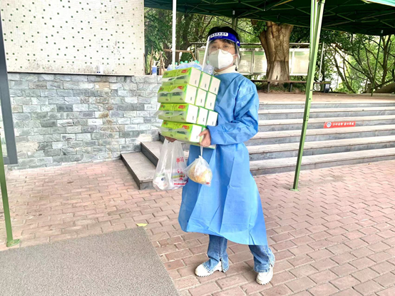 连续N天的查流调、核信息、贴试管、装试纸、分餐送餐、送药送日用品、核酸检测和登记,抬的抬、提的提、抱的抱,这支由80后—90后组成的学生工作队伍一直守护在兰花湖片区4114名学生的身旁。不少人手腕都抬肿了,上下楼梯膝盖压痛了,大汗淋漓衣服湿透了,却没有一个人“梭边边”“nia肩膀”。由于非学生公寓区没有热水器,驻守兰花湖片区的19名学工队伍的老师们,有的已经9天没有洗澡了,他们开玩笑地说,“我们现在可是最有味道的人。”