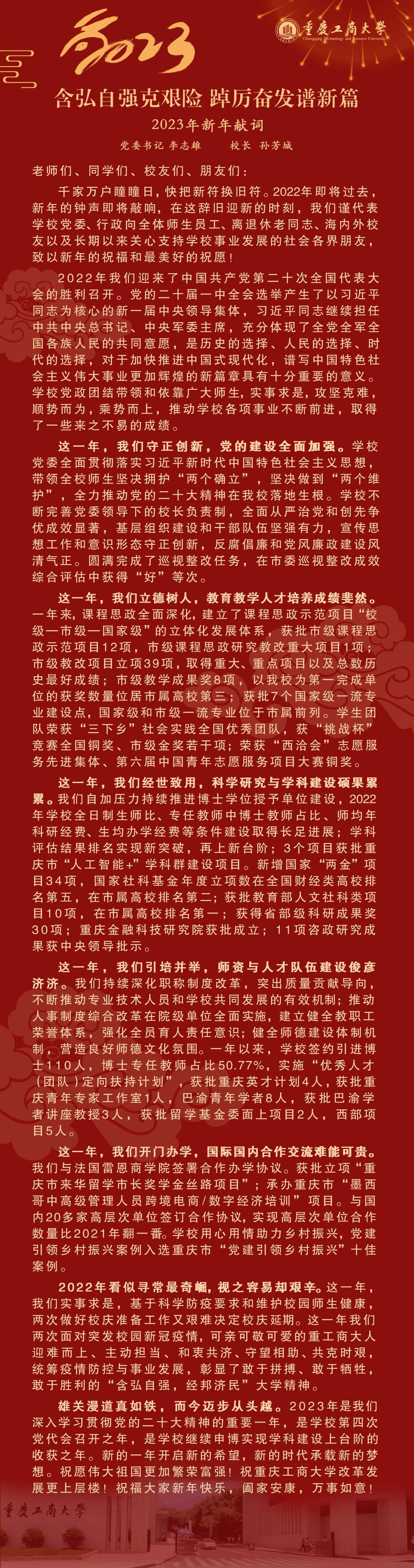 含弘自强克艰险 踔厉奋发谱新篇——2023年新年献词