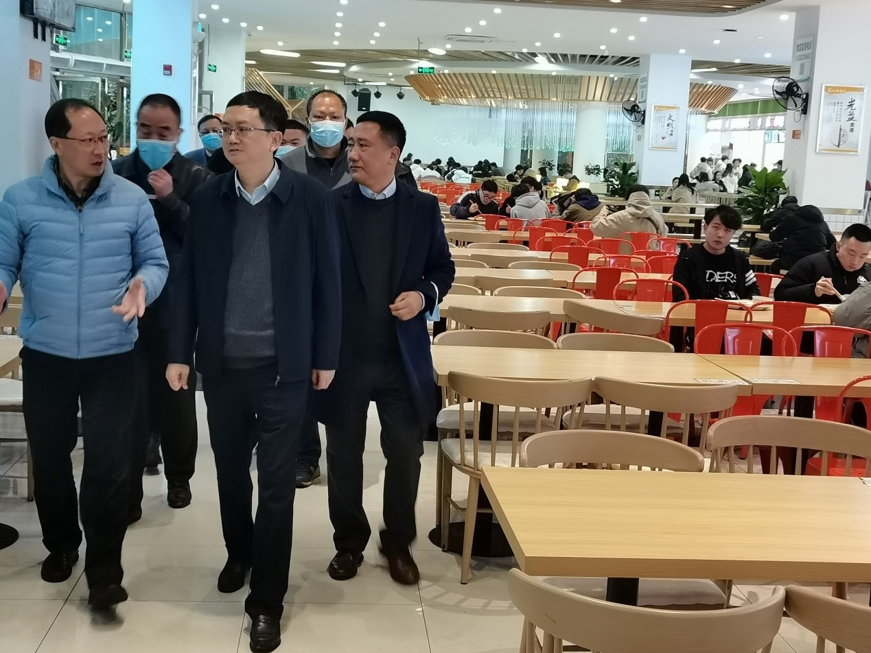 3月2日下午,南岸区副区长蒋文新带领区政府办公室、区教委、区市场监督管理局、海棠溪街道办事处负责人对白菜官网学生食堂食品安全工作进行实地考察调研。白菜官网党委常委、副校长张波,相关职能部门负责人陪同检查。