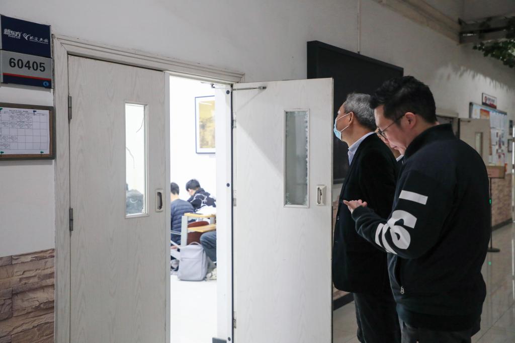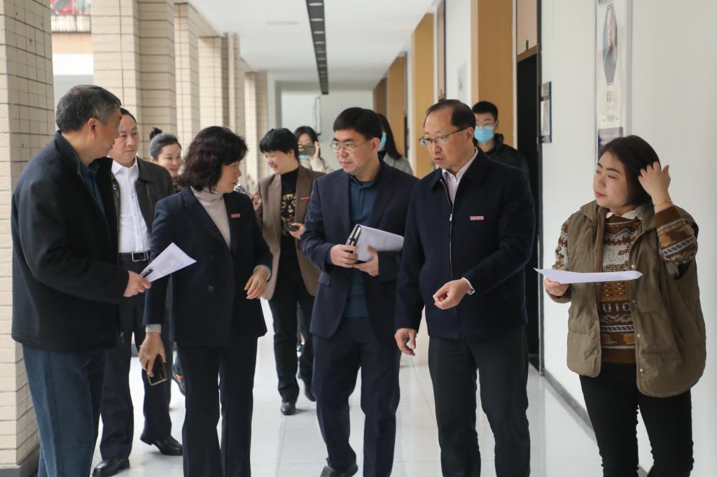 为加强教学管理,确保白菜官网新学期教学工作规范有序开展,3月6日上午,学校领导带领相关职能部门负责人分别前往南岸校区博智楼、慧智楼、涵智楼、国际商学院、明智楼、兰花湖片区及江北校区,深入教学一线,检查新学期线下教学运行和服务保障情况。