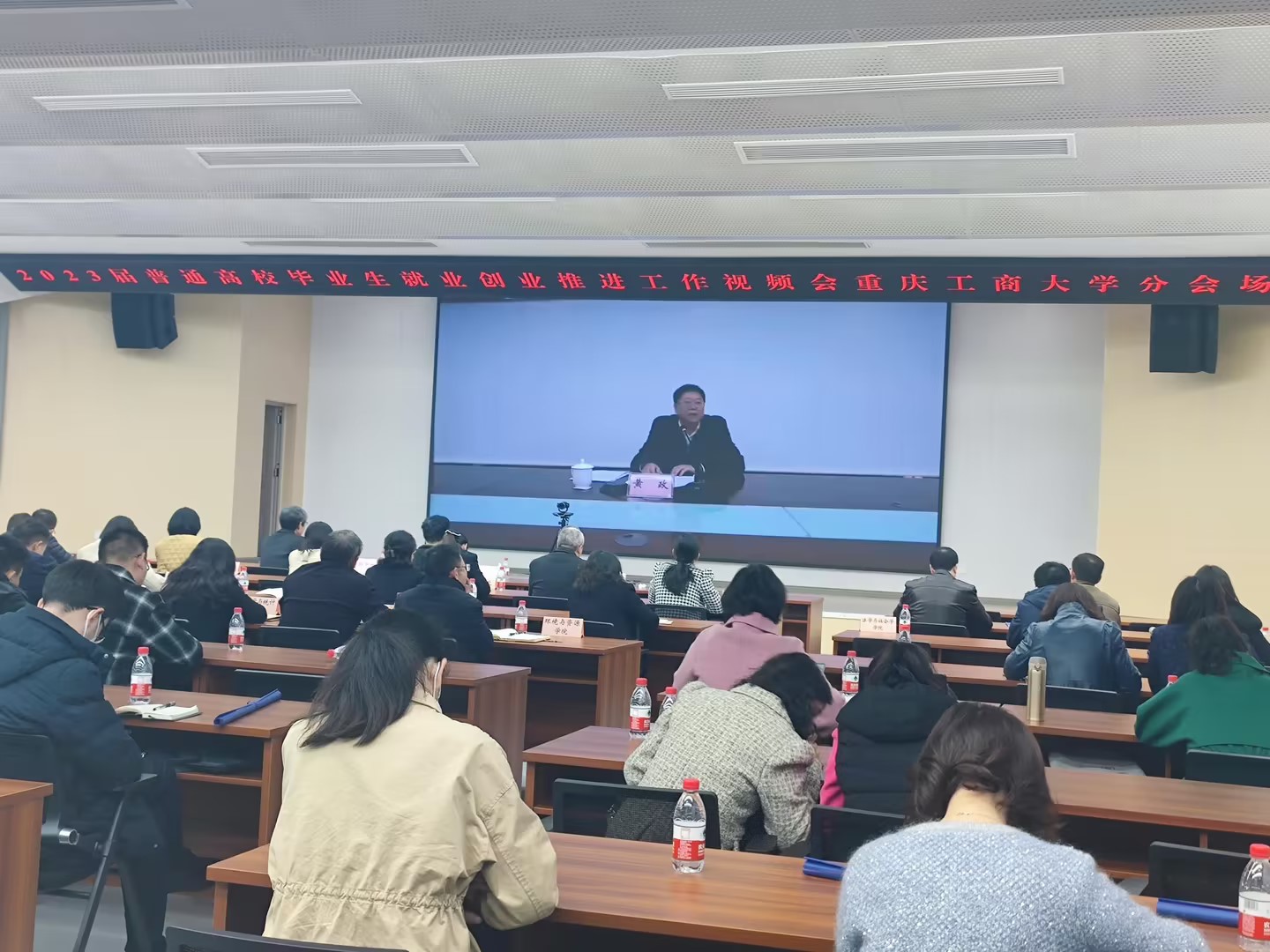 3月6日下午,市教委组织召开重庆市2023届普通高校毕业生就业创业推进工作视频会议。市委教育工委书记、市教委主任黄政,市人力社保局党组成员、副局长夏杨松出席会议,市委教育工委委员、市教委副主任金玲主持会议。白菜官网在明德楼1019会议室设分会场,学校党委书记李志雄,党委副书记、校长孙芳城,党委常委、副校长陈运超,各二级学院书记、就业联络员、2023届毕业班辅导员,学生处、教务处、研究生院、团委、招生就业处等负责人参加会议。