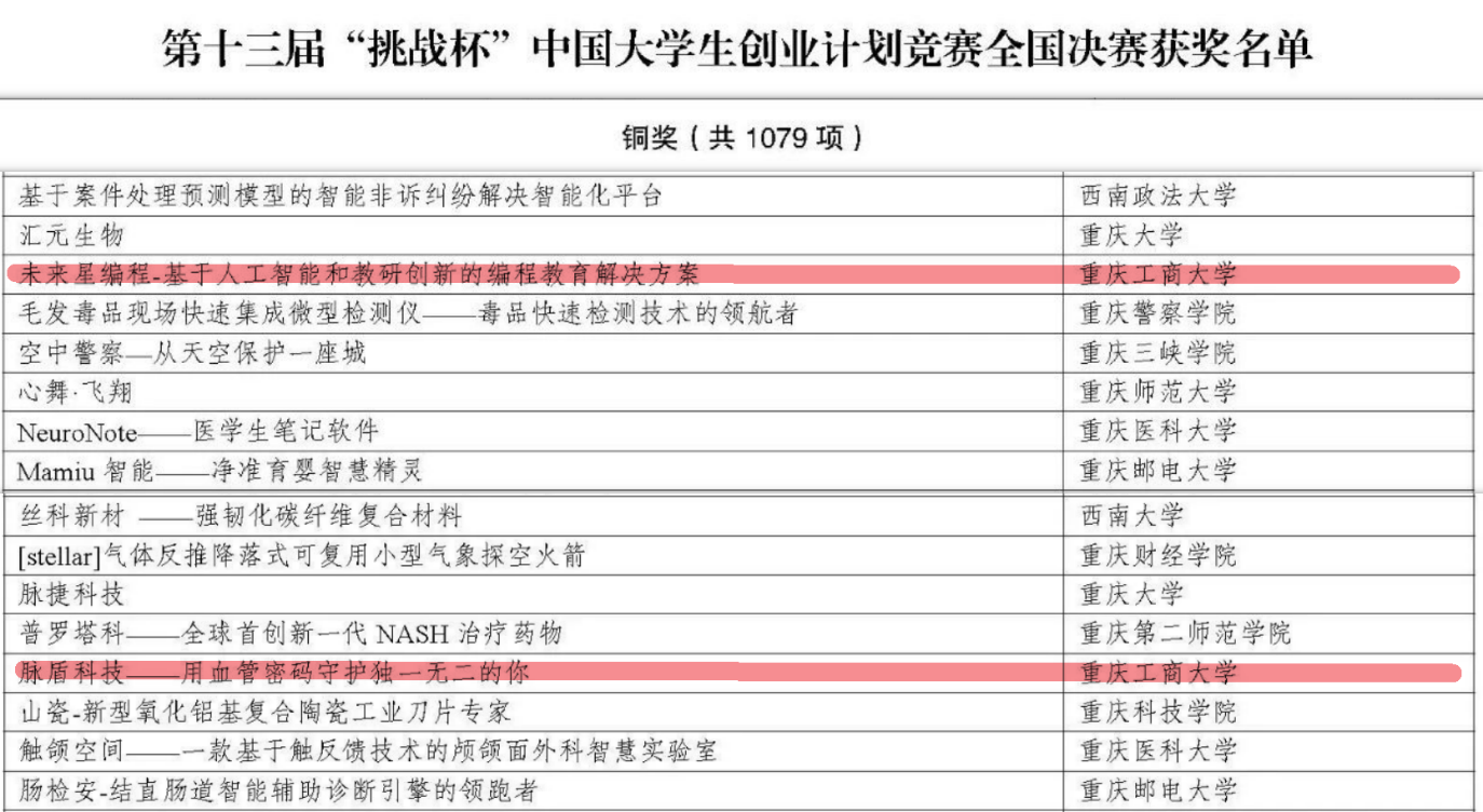 本届大赛共吸引来自3011所高校的142.4万名学生参赛,累计提交33万余个创新创业项目,最终评选产生金奖项目154个、银奖项目309个、铜奖项目1079个。