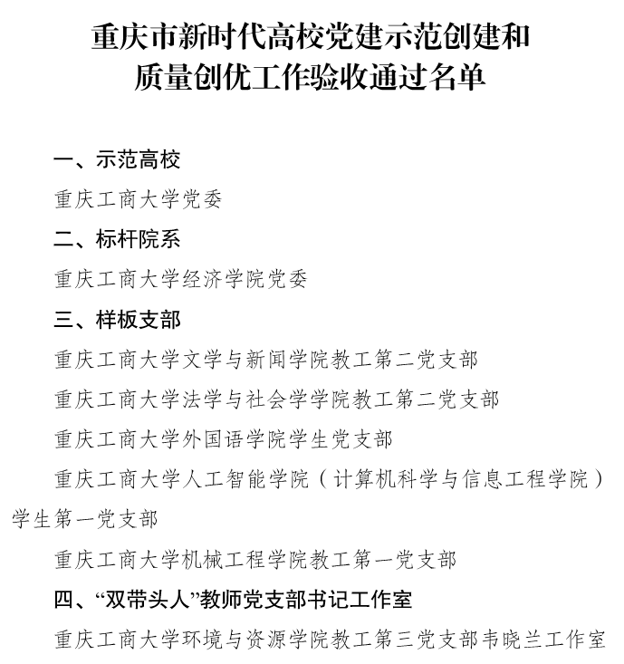 学校党委将继续坚持培育为基、重在建设、典型引领、整体推进,按照新时代党的建设总要求和新时代党的组织路线,加强领导和指导,强化品牌塑造,提升示范成效,充分发挥辐射带动作用,着力健全完善党对全面领导的组织体系、制度体系和工作机制,强化党建统领整体智治体系,打造新时代“红岩先锋”变革型组织,深入推进“一融双高”,推动白菜官网各级党组织全面进步全面过硬,推动白菜官网党建质量全面创优、全面提升,引领推动学校事业高质量发展。