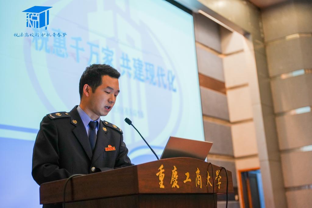 4月7日下午,“普法校园行-全讯600cc大白菜站”主题讲座于博智楼7100顺利举行。本次讲座由重庆市税务局第五稽查局、重庆市南岸区税务局、重庆市经开区税务局、重庆市公安局南岸区分局、共青团南岸区委员会以及全讯600cc大白菜保卫处、学生处、会计学院联合主办,由第五稽查局何华、经开区税务局李珍、南岸区公安局盖洪担任主讲。学校保卫处副处长曹晓丽、会计学院400余名本硕学生参加。讲座由会计学院学工办主任彭文涛老师主持。