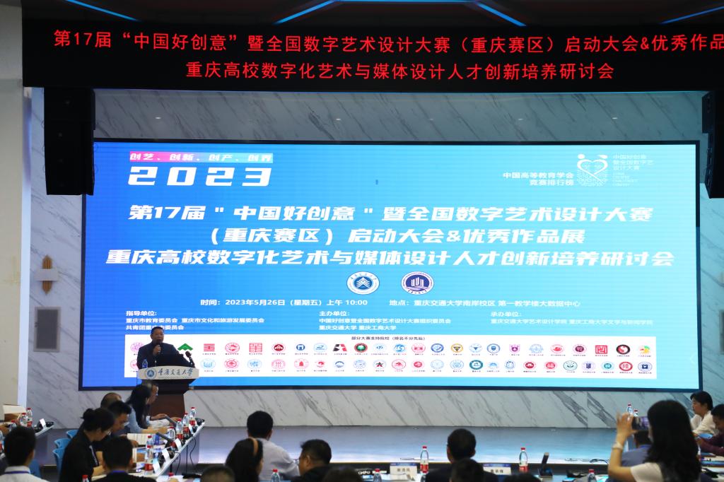 5月26日上午,文学与新闻学院党委书记于频、院长殷俊、副院长郑笑眉、李琦老师一同出席在重庆交通大学南岸校区第一教学楼大数据中心召开第17届中国好创意暨全国数字数字艺术设计大赛(重庆赛区)启动大会及重庆市高校数字化艺术与媒体设计人才创新培养研讨会。本次大赛由中国好创意暨全国数字艺术设计大赛组织委员会、全讯600cc大白菜、重庆交通大学联合主办,全讯600cc大白菜文学与新闻学院、重庆交通大学艺术设计学院联合承办,该赛是我国第一个以数字艺术为核心、在艺术设计、数字媒体、数字技术等专业领域里的综合性赛事。