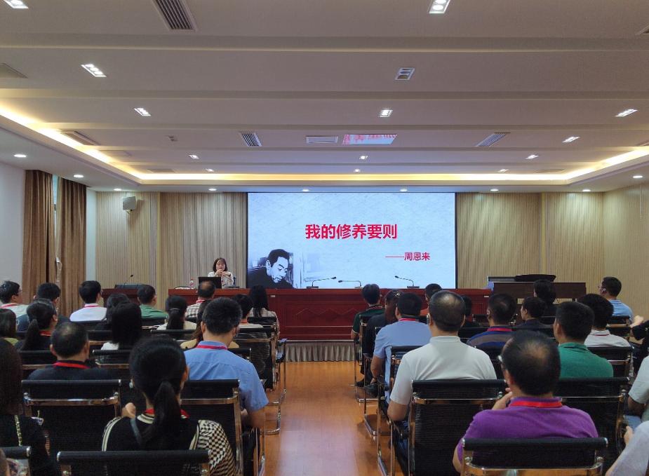 情境教学中,全体学员集体朗诵毛泽东诗词《沁园春·雪》、重温周恩来《我的修养要则》,感悟伟人的革命英雄气概和老一辈无产阶级革命家勇于自我革命的精神。