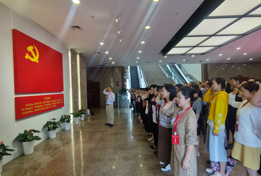 在红岩革命纪念馆,全体学员面向鲜红的党旗,重温入党誓词,砥砺前进初心。