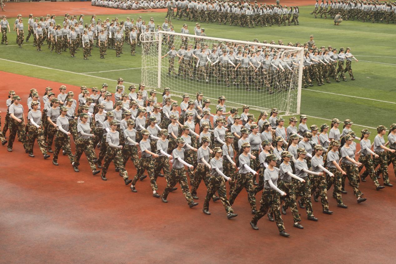 踏入场地,身着绿海点缀下的斑斑迷彩,听见整齐划一的踏步声,是奋斗、刻苦之心将阳光下我们满是坚定的身影拖长。