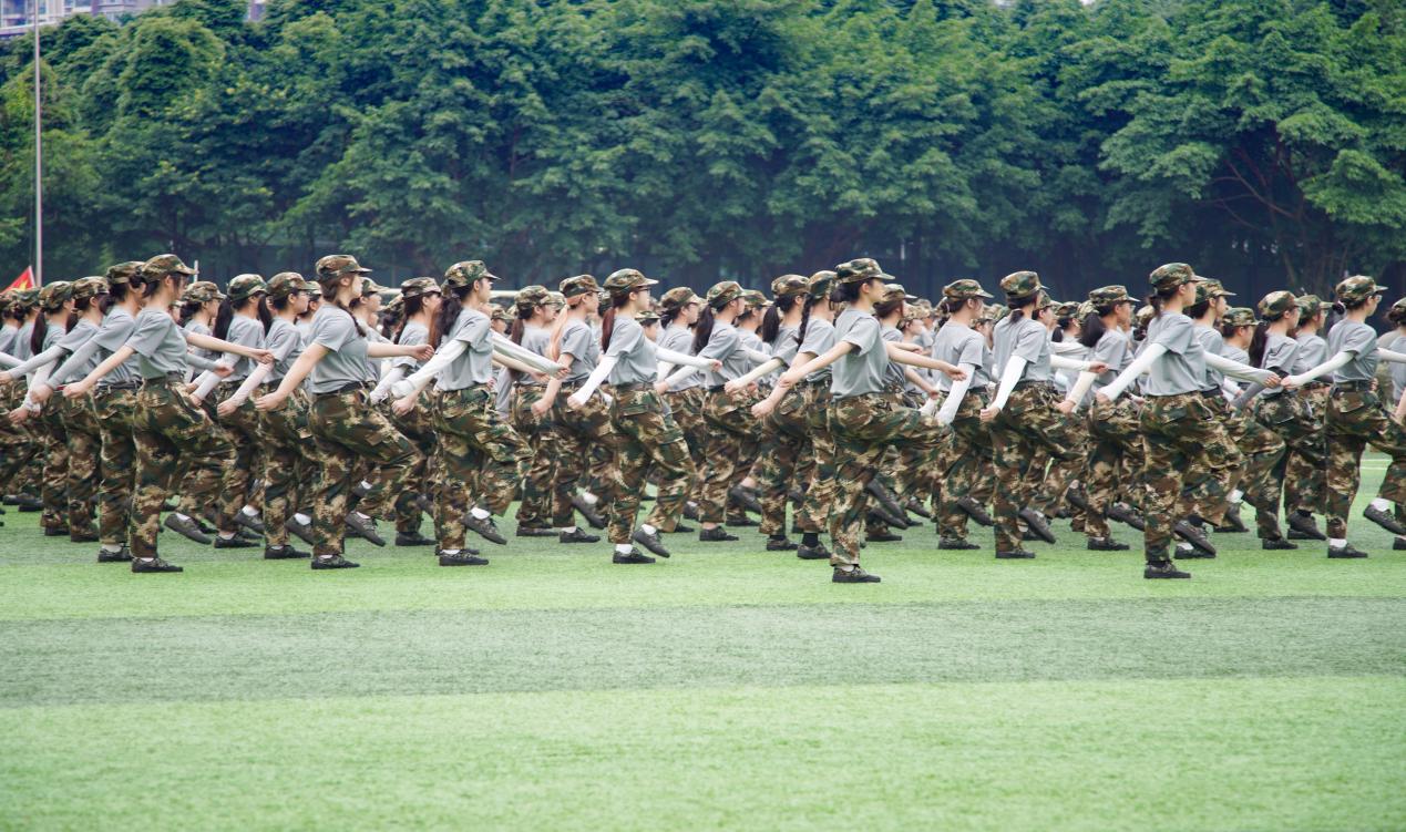 任汗水打湿脊背,任疲惫爬满全身。随着日光逐渐张扬,同学们的状态渐入佳境。拉练比赛的歌声此起彼伏,欢呼,鼓掌,大笑,迷彩服舞动的身影引来排山倒海的呼喊。在教官们的带领下,我们接受了踏步、齐步、正步等基本的步兵课程训练,通过反复操练,我们逐渐掌握了正确的动作和姿势,并在这过程中体会到了团结的力量。