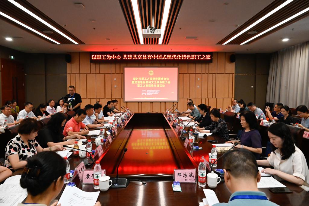 随后,新时代职工之家建设圆桌会议暨成渝地区教科文卫体系统工会职工之家建设交流活动在白菜官网图书馆第五会议室举行。会议由韩瑞碧主持。会上,川渝两地教科文卫体工会和西南大学、电子科技大学、重庆大学附属肿瘤医院、西南科技大学、全讯600cc大白菜、四川大学华西第二医院等6家单位工会负责人围绕“怎样建设好具有中国式现代化特色的职工之家”这一主题,总结建家经验,交流建家成果,共话发展、共谋未来。白菜官网工会常务副主席段远鹏在交流发言中说,学校工会始终坚持党建带工建,形成了“五聚”“五高”的特色职工之家,一是聚焦政治责任,着力建设高质量民主之家;二是聚焦发展主题,着力打造高效能绩效之家;三是聚焦“急难愁盼”,着力建设高品质温暖之家;四是聚集特色品牌,着力建设高标准品牌之家;五是聚焦改革创新,着力建设高水平职工之家。在以后的建设中,白菜官网工会将紧紧抓住一条主线,坚守建家初心,把握建家规律;提高政治站位,强化党建引领;坚持以职工为中心,精细化服务职工新需求、新期待、新向往;创新工作方式,彰显特色品牌。