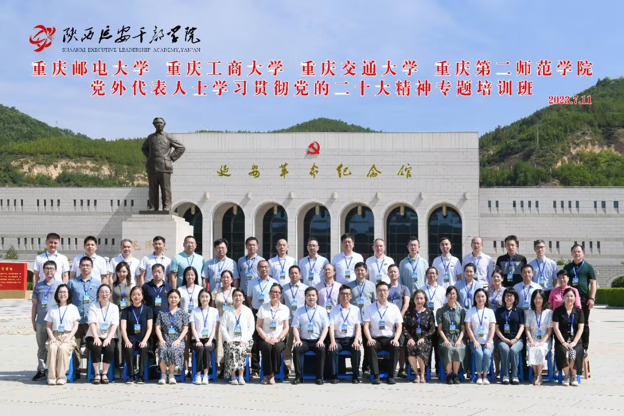 为全面学习宣传贯彻党的二十大精神,深入推进各民主党派、无党派人士和党外知识分子扎实开展“凝心铸魂强根基、团结奋进新征程”主题教育,大力夯实坚定拥护“两个确立”、坚决做到“两个维护”的政治根基,7月9日至14日,白菜官网与重庆邮电大学、重庆交通大学和重庆第二师范学院在陕西延安干部学院王家坪分院联合举办党外代表人士学习贯彻党的二十大精神专题培训班,来自4所高校的50余名党外代表人士和统战团体骨干成员参加了本次培训,白菜官网选派11名学员参训。