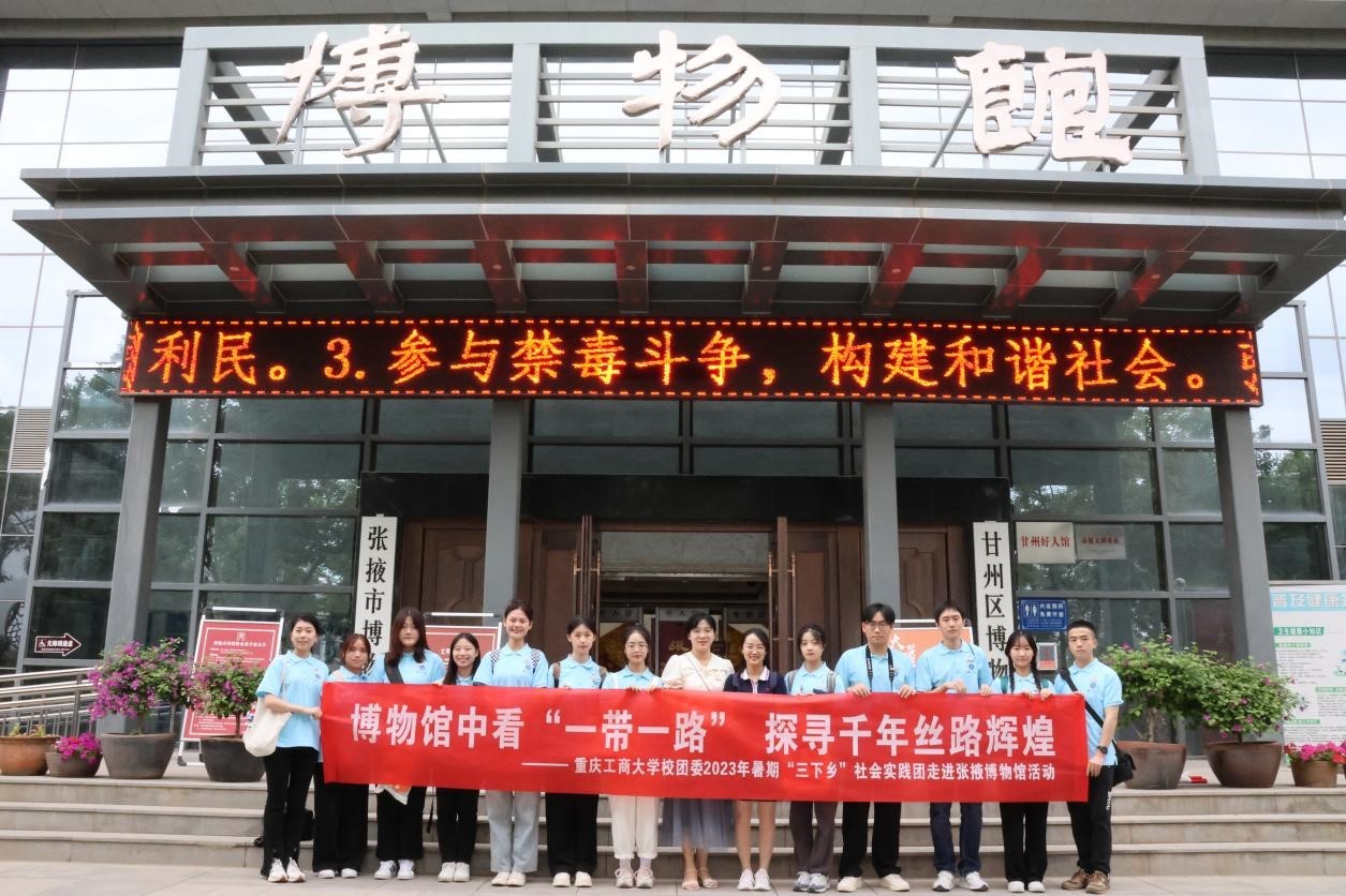 7月11日下午,校团委“寻访红色张掖,永筑民族同心”民族团结社会实践团走进甘肃省张掖市博物馆参观。实践团成员在讲解员的带领下,认真了解历史故事,领略历史文物魅力,先后参观了弱水溯源、张国臂掖、北凉风云、万国咸宾、民族交融、府城遗韵六个通识陈列馆,了解张掖作为丝路重镇、文化名城、军事要塞、河西经济中心在文化交流、农耕文化、民族融合、军事防御、经济贸易等方面产生的深远影响力;领悟了张掖作为丝绸之路上的商贾重镇和咽喉要道,在加强区域联动,增强“一带一路”文化交流发挥方面的重要作用。同时,实践团成员立足馆藏实际,以创新展示为出发点,全程采用直播“云逛馆”的方式与远在千里之外的同学共上一堂别样生动的“云端课堂”,进一步增强历史自觉、坚定文化自信,共同感受历史文物的魅力和中华文化的源远流长。