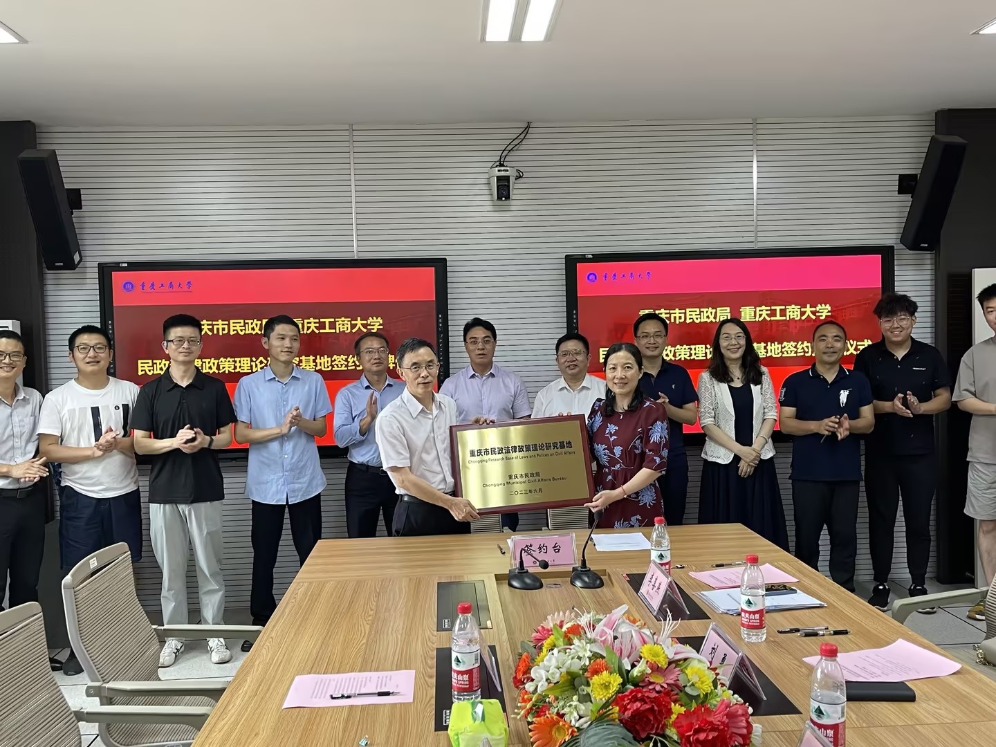 随后,双方代表签署了“关于共同开展民政法律政策理论研究的合作框架协议”,并授牌。