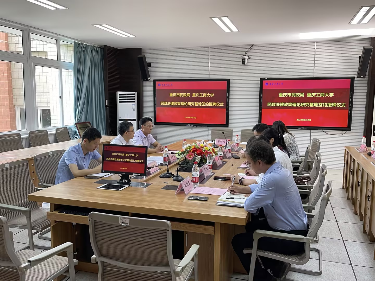 8月2日上午,重庆市民政法律政策理论研究基地签约仪式在白菜官网慧智楼90429会议室隆重举行。重庆市民政局副局长许建华一行及白菜官网副校长柏群出席签约仪式。法学与社会学学院长黄文、副院长刘勇、副院长侯明喜、基地负责人李喜燕等参加了会议。