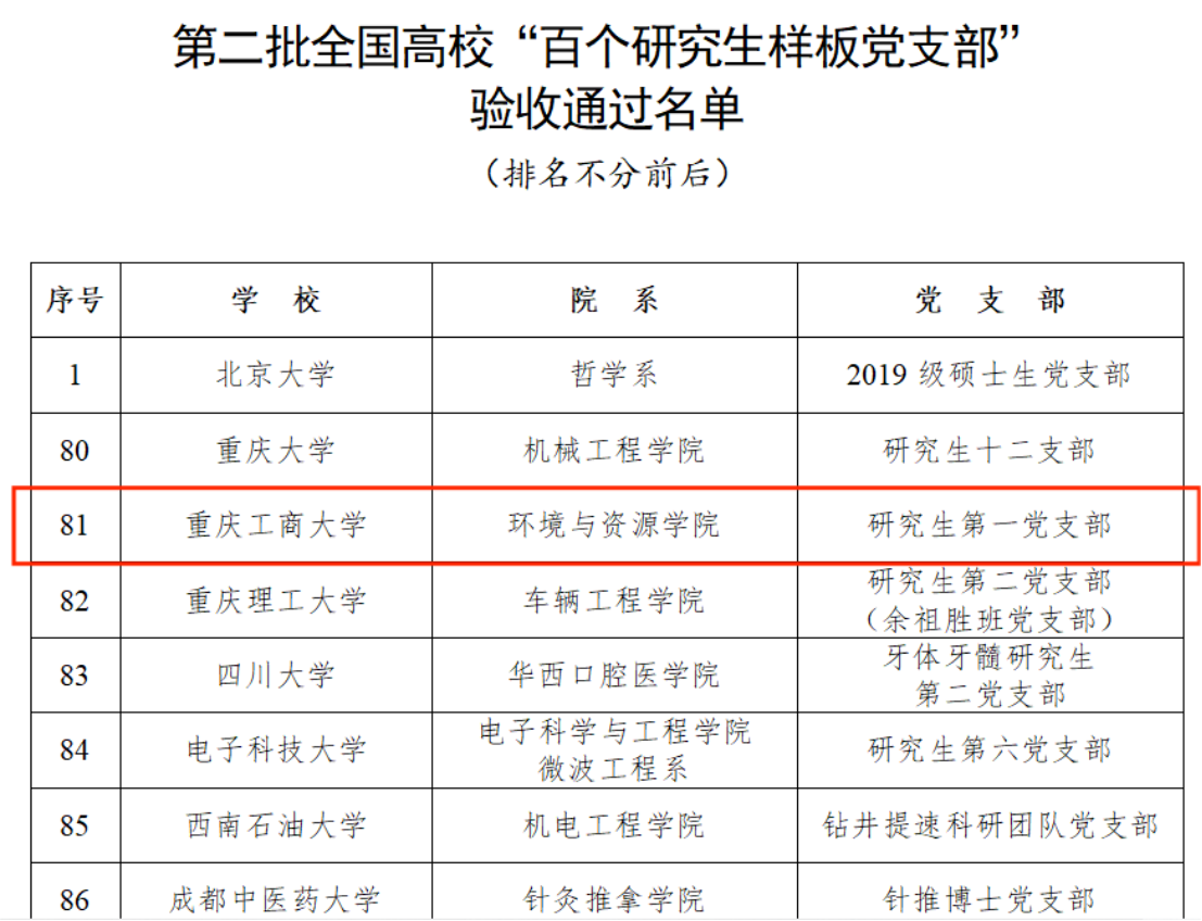 近日,教育部公布第二批全国高校“百个研究生样板党支部”和“百名研究生党员标兵”创建培育工作验收通过名单。白菜官网环境与资源学院研究生第一党支部通过第二批全国高校“百个研究生样板党支部”创建培育工作验收。