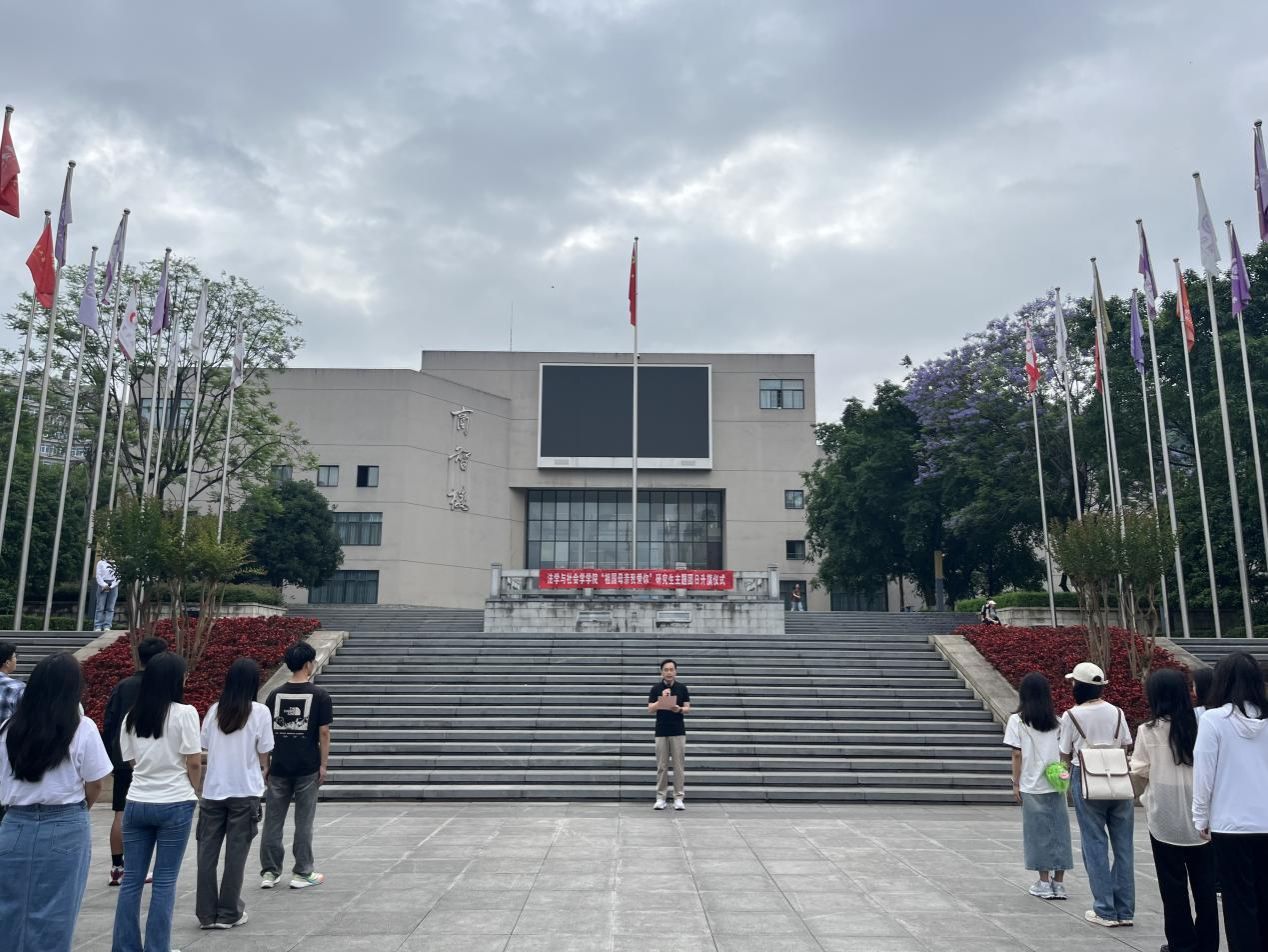 5月20日早上,法学与社会学学院在南岸校区含弘广场举行了以“祖国母亲我爱你”为主题的主题团日升旗仪式。学校党委常委、副校长李国军,法学与社会学学院副院长刘勇,学团办主任何祖润,研究生辅导员李静兰以及法学与社会学学院2023级硕士研究生参加了本次升旗仪式。仪式由2023级社会学硕士研究生吴梦洁主持。