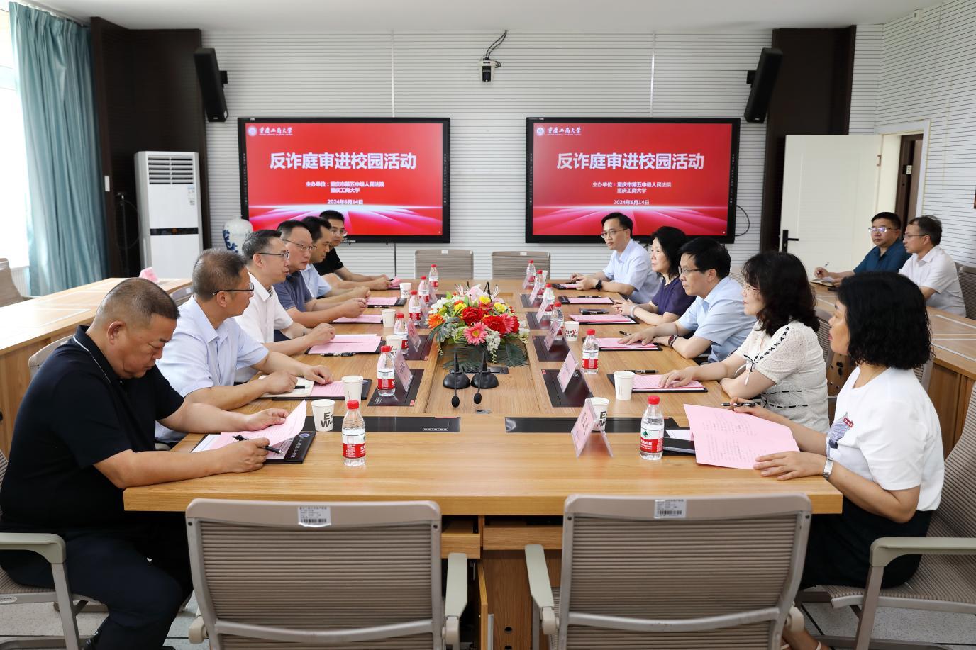 6月14日,法学与社会学学院联合重庆市第五中级人民法院举办大学生诈骗案件真实庭审进校园活动,学校党委书记曾维伦、党委副书记宋豫,重庆市第五中级人民法院院长胡红军、党组成员朱文林出席活动。全国人大代表傅红涛、殷其龙、黄大勇、刘平,全国政协委员卢跃富等5名全国、市级人大代表和政协委员现场听审,40余名代表委员线上听审,白菜官网保卫处负责人以及14个学院的近150名本、硕学生线上线下旁听庭审,庭审同时向西南大学、重庆医科大学、重庆交通大学等12所高校约4000余名师生直播,活动受到人民日报、中央电视台、新华社等10余家媒体关注报道。