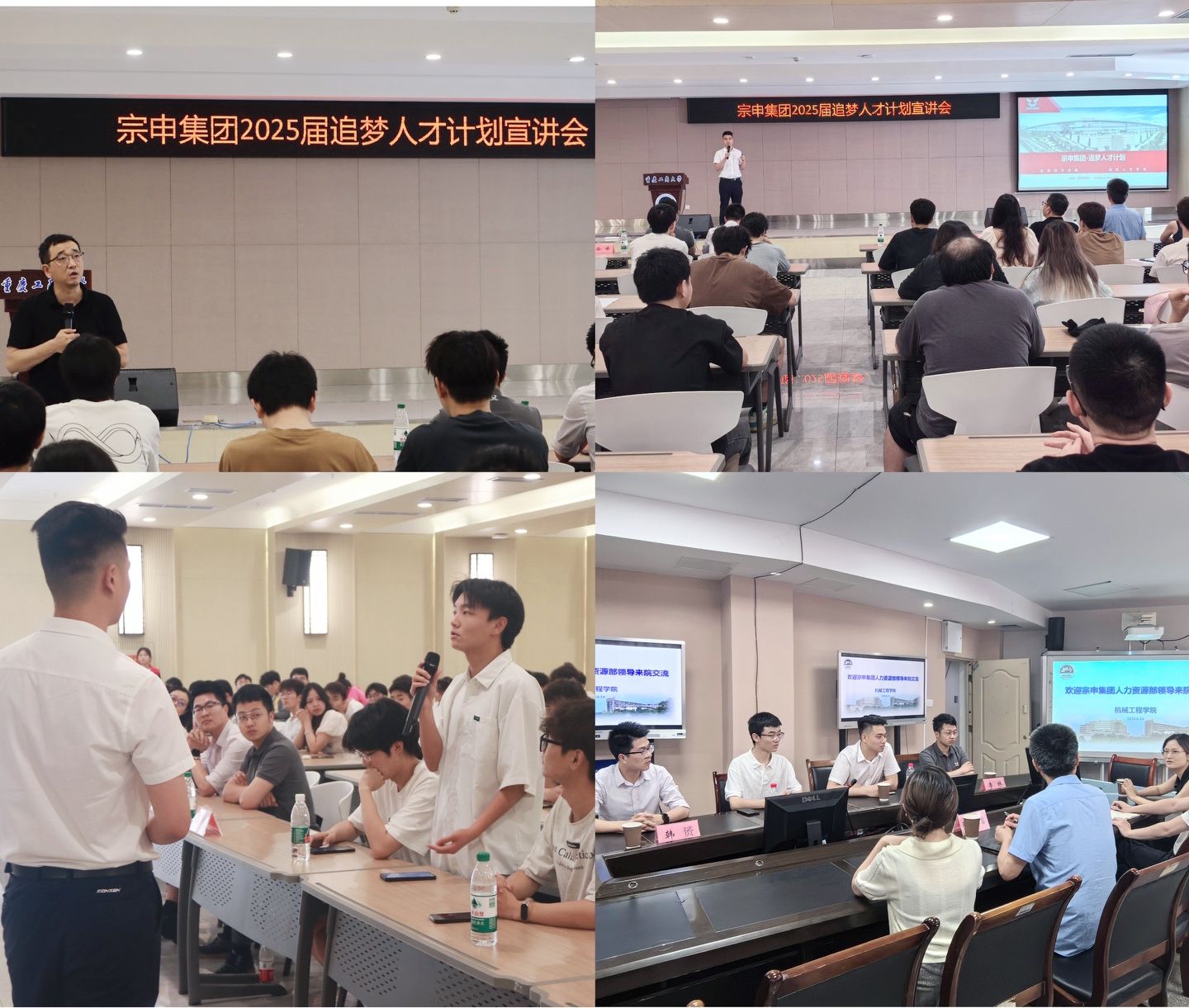 6月14日下午,机械工程学院与宗申集团人力资源部在学生事务中心B101报告厅举办“宗申集团2025届追梦人才计划宣讲会”,宗申机车招聘经理艾豪、宗申动力招聘经理韩赟出席活动,来自机械工程学院、经济学院、外语学院、工商管理学院、文学与新闻学院的2025届毕业研究生、本科生200余人参加宣讲会。会议由机械工程学院党委副书记陈春洁主持。