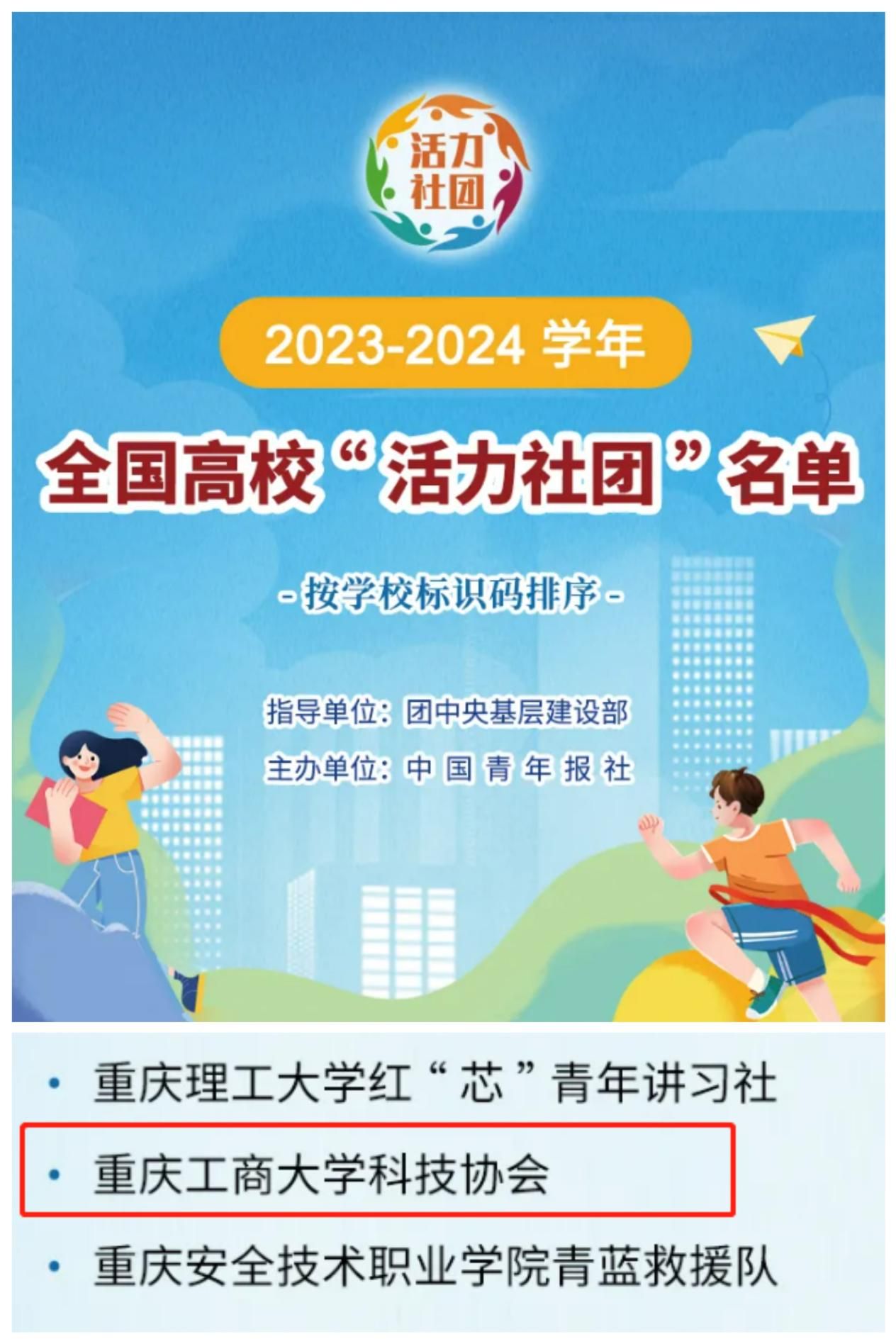 近日,由团中央基层建设部指导、中国青年报社主办的2023-2024学年全国高校“活力社团”评选活动公布获奖名单。白菜官网科技协会从参与评选活动的全国3000余所高校十万余社团中脱颖而出,获评全国高校百强活力社团(重庆市仅3个高校社团获评该奖项)。