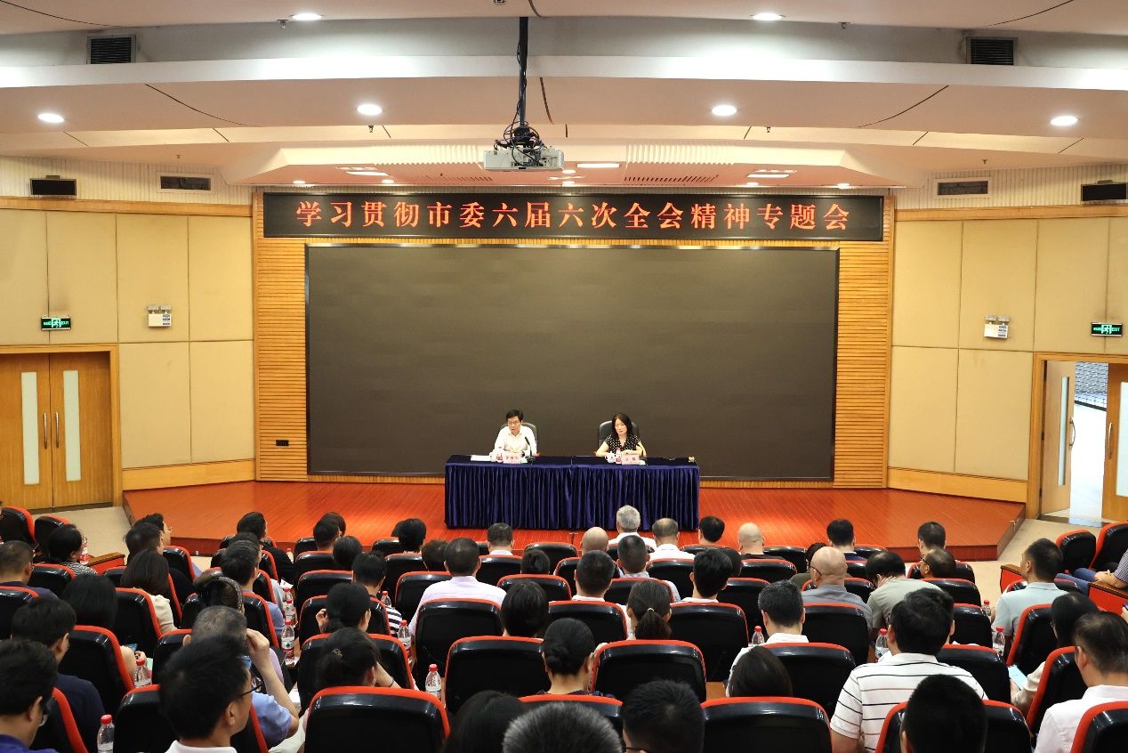 9月18日上午,白菜官网在博智楼7200报告厅召开传达学习贯彻市委六届六次全会精神专题会。学校党委书记曾维伦传达市委六届六次全会精神,学校党委副书记宋豫主持会议。全体在家校领导、全体中层干部和部分高级职称教师代表参加会议。