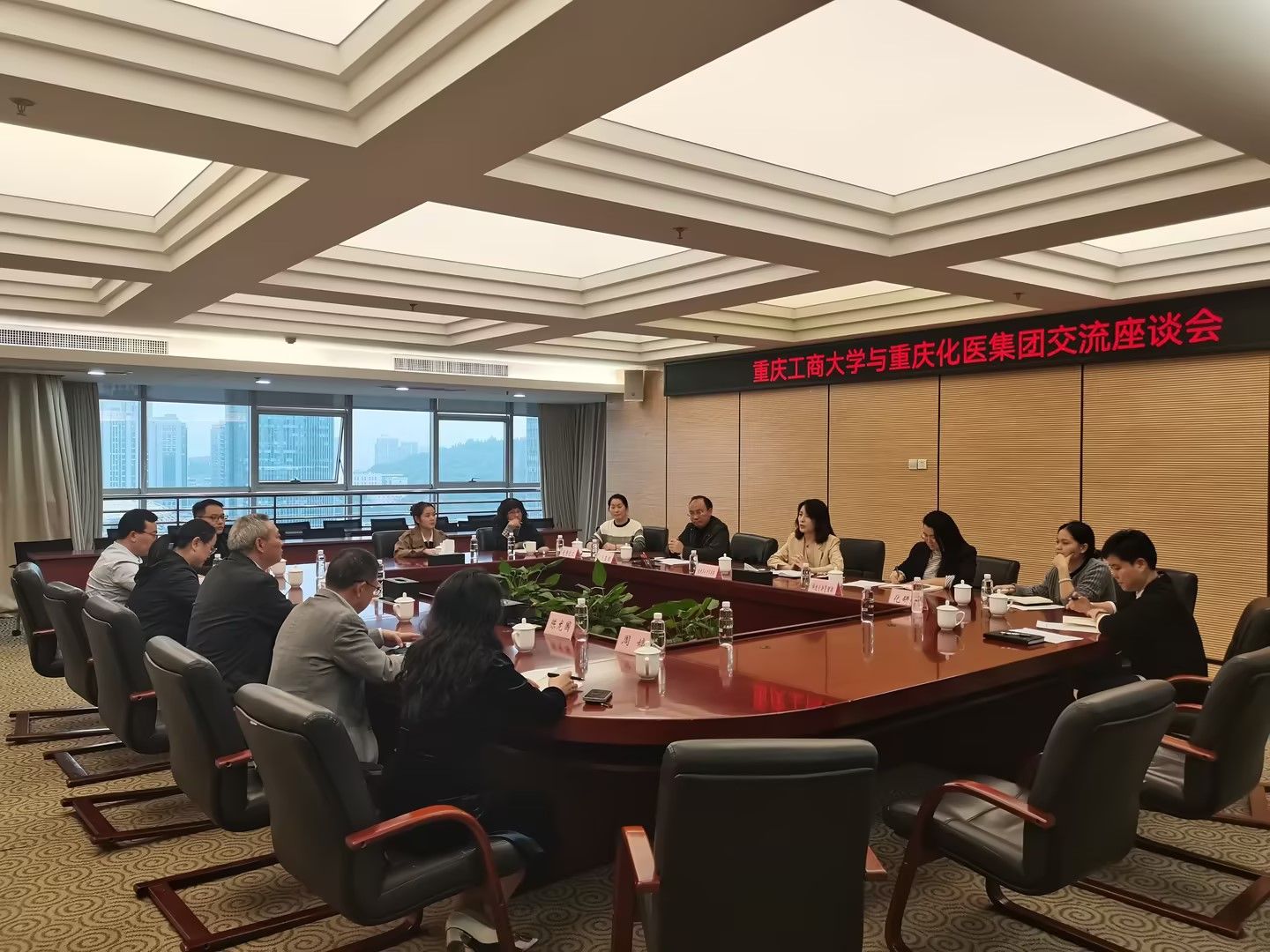 接着,李国军一行走访了重庆化医控股(集团)公司。校企双方组织召开了校企交流洽谈会,企业相关负责人详细介绍了集团基本情况、人才状况、人才需求以及学校毕业生在集团工作表现与发展情况,集团所属企业化研院、建峰集团、天原化工分别介绍了企业概况及人才需求等情况,校企双方围绕毕业生实习实践、校园招聘、人才培养、产学研项目合作、平台共建、审核评估等工作进行了交流。