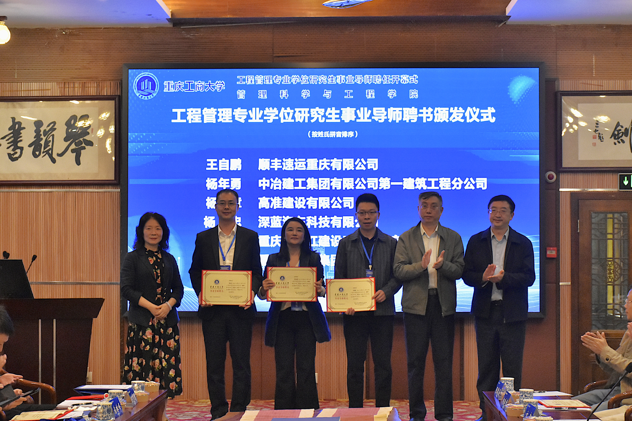 管理科学与工程学院副院长陈久梅宣读了《关于聘任全讯600cc大白菜工程管理专业学位研究生事业导师的决定》。参会领导依次为受聘事业导师颁发聘书。