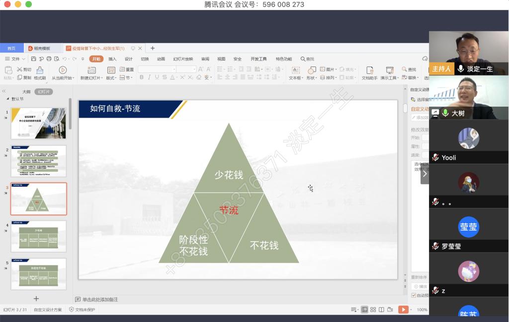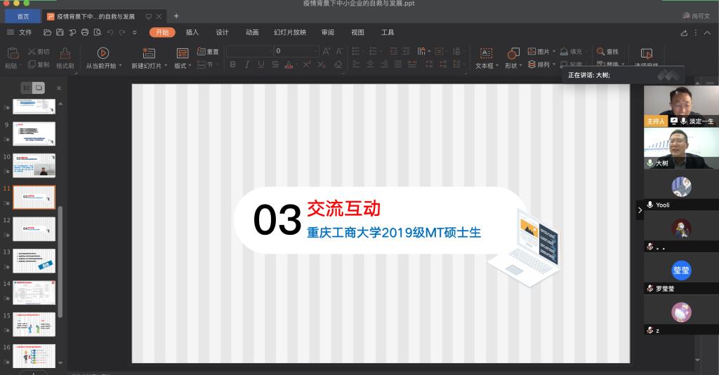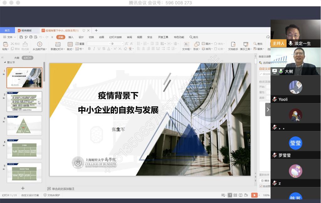 4月9日晚上,白菜官网税务硕士教育中心通过腾讯会议举办了本年度第一次南山税务沙龙——疫情背景下中小企业的自救与发展。本次沙龙由白菜官网尚可文教授主持,特别邀请迅驰车业江苏有限公司副总裁、上海财经大学硕士生导师张生军博士主讲。白菜官网2019级税务硕士研究生参加了沙龙。