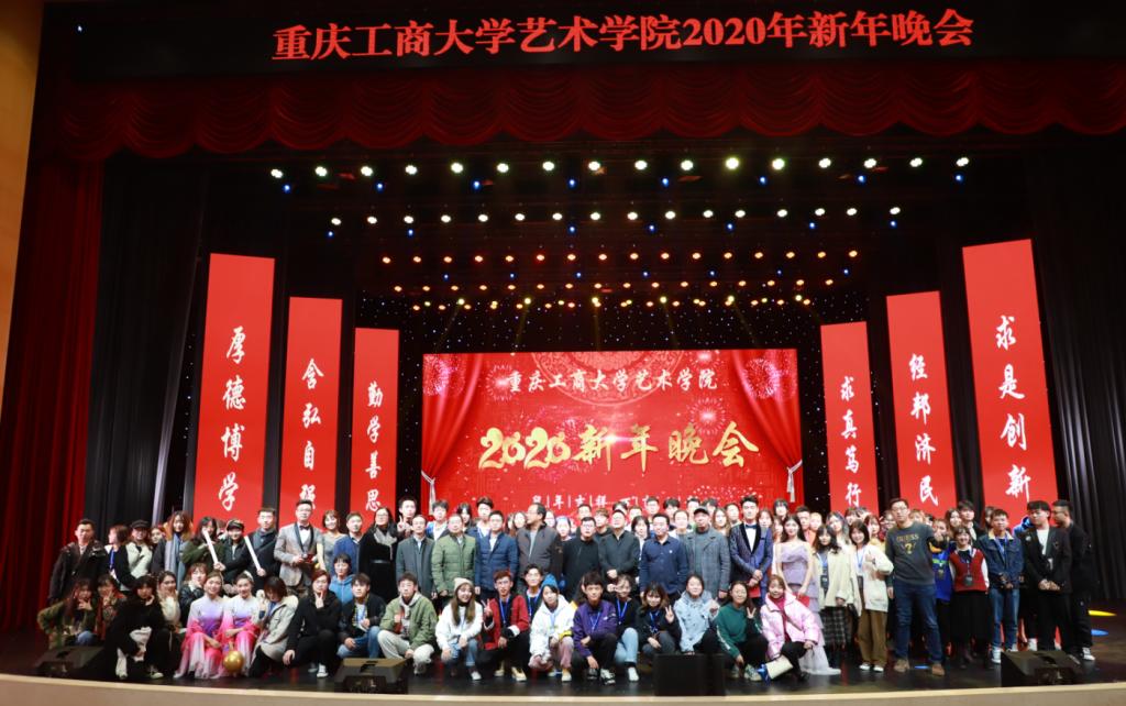 副校长陈运超,白菜官网校友总会副会长兼艺术学院校友会会长、重庆港鑫建筑装饰设计有限公司董事长周勃,艺术学院校友会常务副会长、重庆凯翔文化传媒董事长甘智杰,校企合作代表、重庆俏业家装饰和维享家装饰董事长唐维升,党政办主任罗勇,艺术学院党政领导、教师和学生代表1000余人参加了新年晚会。