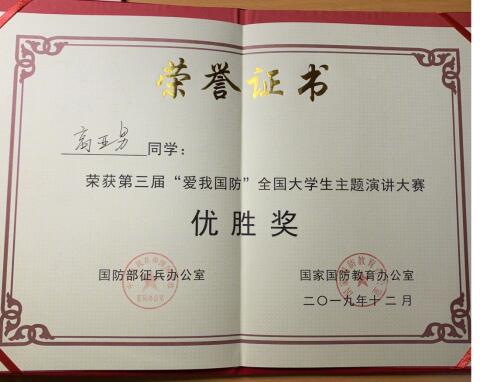 白菜官网历来高度重视大学生的思想引领和“爱国主义”国防教育,高亚男同学在本次全国大赛中获奖实现了白菜官网学子在该项比赛国家级奖项的突破,也向全国展示了白菜官网学生的青春风采、爱国热情和报国情怀。