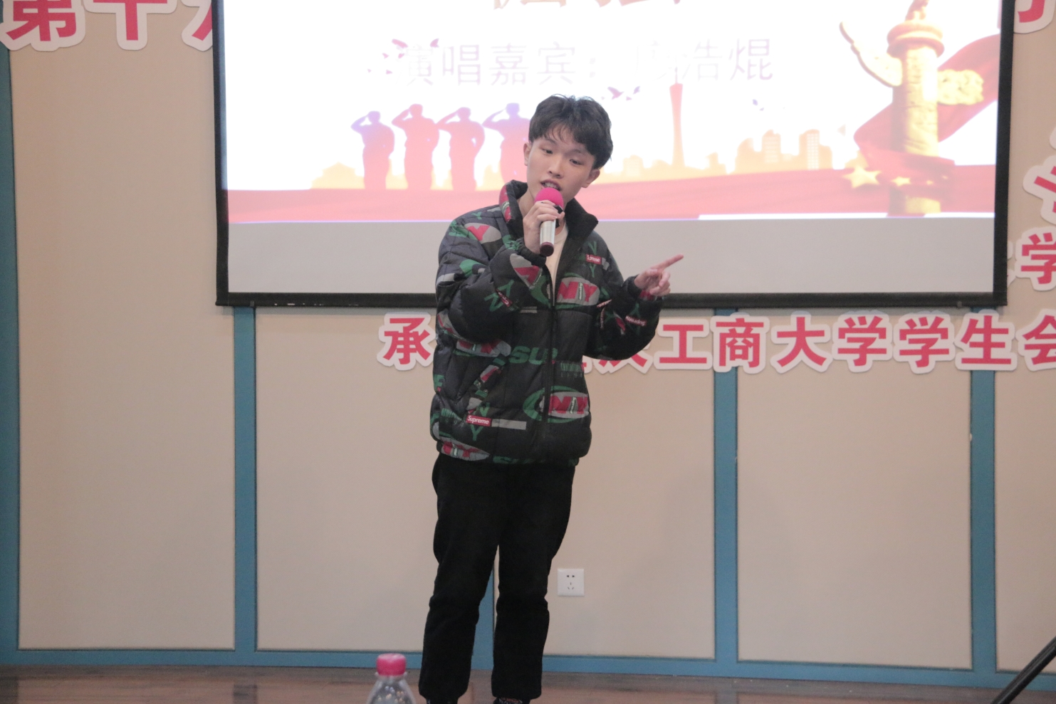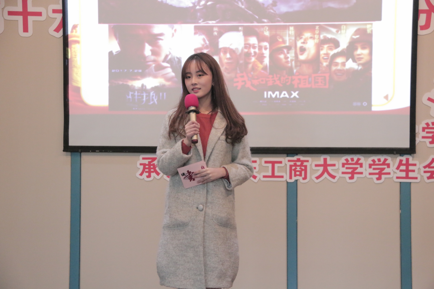 活动伊始,同学们纷纷发言,表达自己对本次主题的看法与见解。随后,一段视频带领同学们欣赏了祖国的大好河山。四位同学分别分享了自己的读书感悟。第一位分享者黄骞瑶就《新中国砥砺奋进的七十年》谈到60周年和70周年庆典给她的不同感想,“今天,一个日新月异、充满希望的中国,巍然屹立在世界东方。”第二位分享者曾湘讲述自己观看《战狼2》和《我和我的祖国后》的感想,她说道:“我们的祖国将永远是所有国人可依靠的坚实臂膀,国家的未来发展赋予我们新时代青年重要任务。”第三位分享者覃瑶通过《中国智慧》向同学们谈到:“中国智慧是仁与爱的儒家思想,是大智若愚,知足常乐的道家精神,更应该是根据国情实行的改革开放,是紧密联系科技发展与国家经济社会整体建设的目标。”她的分享让同学们对我国现代科技史有了更深入的了解。第四位分享者杨雅茗结合自身经历向大家讲述了她爷爷坚守初心,梦想成真的小故事,并结合《初心永恒》谈到自己对初心的见解,她说道:“初心是一种坚持的勇气和坚守的毅力,人生最可贵的就是每天都有一颗积极的心,去创造自我存在的价值和意义。”分享会的最后,廖浩焜为大家带来歌曲演唱《倔强》,感情真挚且声音充满力量,感染着在场的每一位观众。