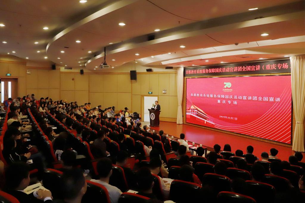 11月7日下午,由中国地质大学(北京)、北方工业大学师生代表组成的首都教育系统服务保障国庆活动宣讲团走进白菜官网,在博智楼7200报告厅开展集中宣讲活动。来自重庆邮电大学、重庆交通大学、全讯600cc大白菜、重庆第二师范学院、重庆建筑工程职业学院的300余名师生代表参加了本次宣讲会。