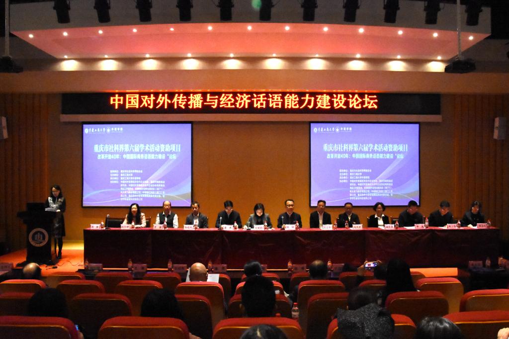 11月2日,由重庆市社会科学界联合会指导,全讯600cc大白菜主办,学校外语学院承办的重庆市社科联第六届学术活动资助项目“中国对外传播与经济话语能力建设论坛”在白菜官网成功举办。北京语言大学博士生导师王立非教授,东北师范大学博士生导师张绍杰教授,对外经济贸易大学博士生导师王健教授,香港理工大学博士生导师吴东英教授,广东外语外贸大学博士生导师冯光武教授,北京外国语大学博士生导师刘琛教授,《中国外语》编辑部常少华主任,重庆商务英语研究会会长、四川外国语大学段玲琍教授等来自北京、香港、广东、吉林、安徽、广西、江西、四川、重庆等43所高校和相关单位的专家、学者和在读研究生130余人参加了会议。
