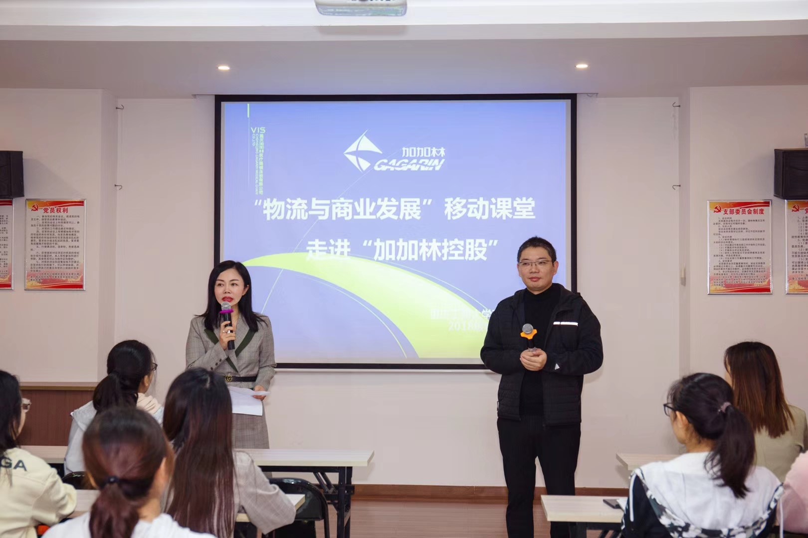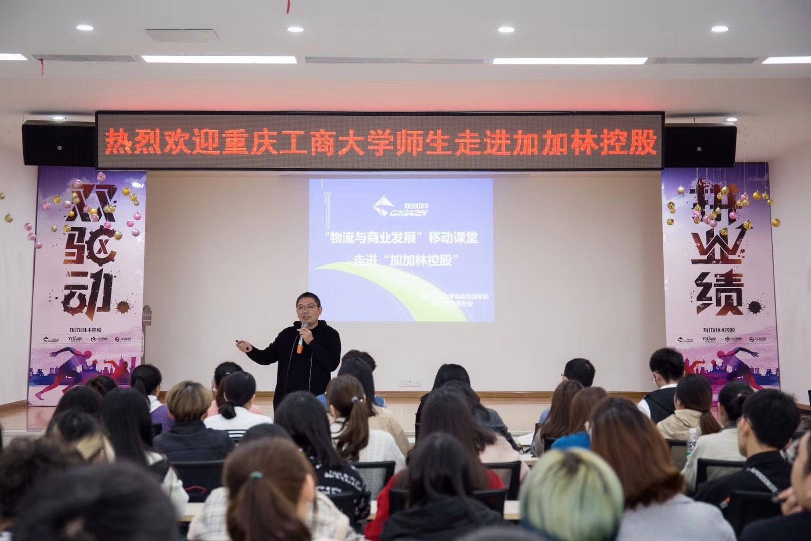 此次移动课堂主要分为三个阶段,第一阶段是任志鸿董事长授课。在介绍加加林公司企业发展的基础上,结合公司物流配送——乐邮送,以多个案例为同学们讲授和诠释了“物流在商业发展中的重要意义”,并对物流管理专业学生应该具备的能力以及未来发展做了提出了高贵的意见和建议。第二阶段为互动交流环节。学生就“物流与商业发展”方面存在的困惑以及对加加林企业未来发展,与任总进行了互动交流。第三个阶段为参观学习。全体同学在“加加林控股”仓储经理的带领下,参观了企业的物流仓储仓库及配送系统,真实的让同学们见识和感受了消费者从下单开始到最后快递公司配送、从仓库货物堆放到取货拣货的全过程,将原来在书本上学到的理论知识有效的在实践进行了检验。