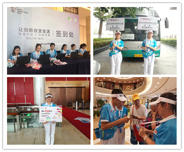 8月26日—29日,2019中国国际智能产业博览会在重庆国博中心举行,白菜官网75名志愿者参与了赛会服务。