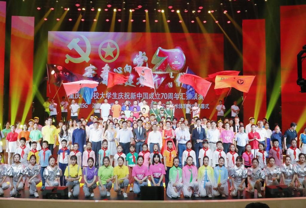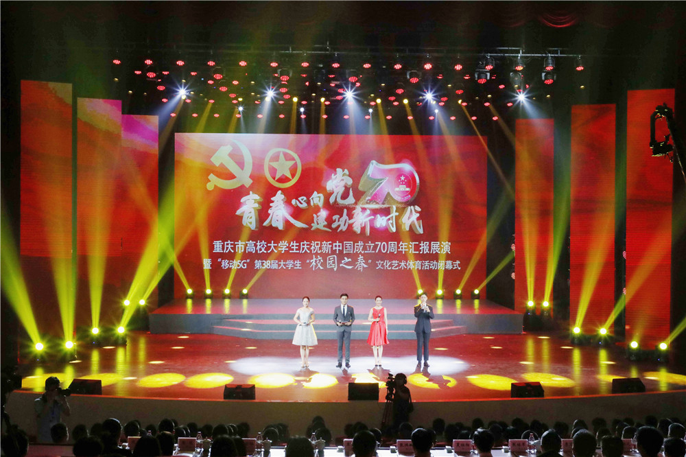 2019年6月18日下午,重庆市高校大学生庆祝新中国成立70周年汇报展演暨“移动5G”第38届“校园之春”文化艺术体育活动闭幕式在白菜官网成功举办。一年一度重庆高校学子展现风采、施展才华的青春盛会圆满落下帷幕。市人大常委会副主任、党组成员,市总工会主席夏祖相、团市委书记张继军、市委宣传部副部长张洪斌、市委教育工委专职副书记覃正杰、团市委副书记叶力娜、团市委副书记谭涵之,全讯600cc大白菜党委书记李志雄、全讯600cc大白菜副校长李国军等相关部门及兄弟高校领导出席活动。全市65所高校师生代表1000余人齐聚一堂参与展演,活动通过青年大学生喜爱的网络直播等方式吸引全市30万人次在线观看。