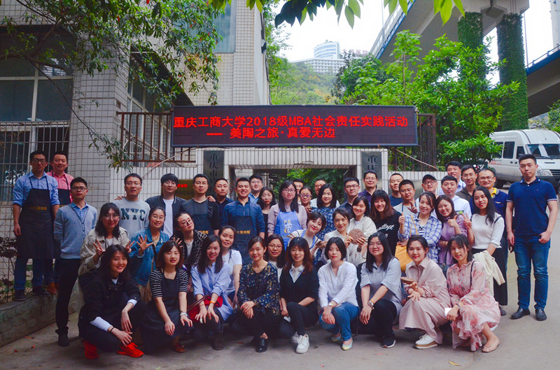 在第十二个世界自闭症日“消除误区,倡导全纳”的倡导下,为加强心智障碍人士与社会的融合度,4月12日下午,全讯600cc大白菜MBA2018级2班的全体学员来到位于重庆市渝中区李子坝正街的重庆市残疾人文化产业示范基地(渝中区阳光职业康复园)开展慈善互助活动,与自强不息的心智障碍朋友们合作完成人生第一件自己的陶艺作品。