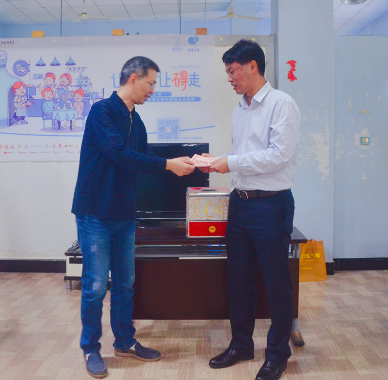 在美陶制作开始之前举行了简单的捐赠仪式,MBA学员班长刘太平代表全体学员向康复基地进行了捐赠,班长陈诗接受了康复基地回赠的纪念作品《轻轨穿楼》(第一件轻轨主题陶艺作品),基地黄建平主任出席捐赠仪式。